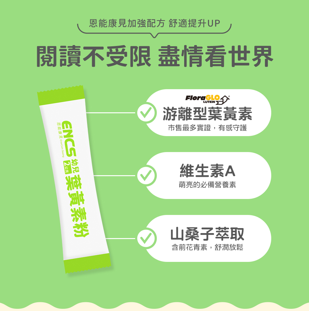 .游離型葉黃素 > 小分子好吸收,具100篇以上研究實證 .專業認可 > 葉黃素獲美國Infant GRAS雙認證 .永信監製 > 全台第一PIC/S認證藥廠-永信高規格監製 .牛奶風味 > 升級牛奶風味 配方好吃更單純!
